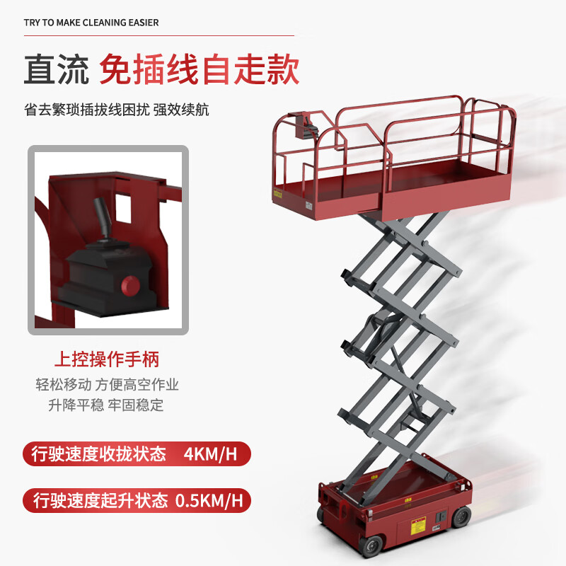 简要描述:扬子自走剪叉式升降平台YZ-ZJ,升降平稳误操保障,免插线自走款/蜂鸣装置/应急下降按钮...